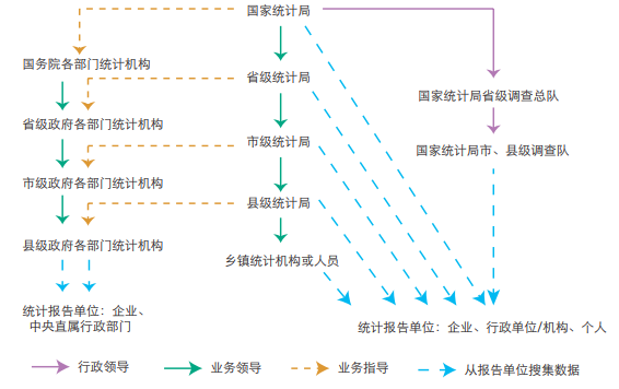 一是县级以上地方各级政府统计机构依法管理和协调本行政区域内的地方统计工作,对本行政区域内的由其组织实施的国家统计调查及其数据质量负总责,对本行政区域内的地方统计调查及其数据质量负总责,指导本级政府有关部门统计工作。二是县级以上地方各级政府统计机构作为地方政府的工作部门,其机构、编制、干部等由地方政府管理。三是县级以上地方各级政府统计机构完成统计工作所需的经费,由地方政府列入财政预算;重大国情国力普查中应当由地方政府负担的经费, 由地方政府列入相应年度财政预算。四是部门统计机构依法组织、管理本部门职责范围内的统计工作,对本部门负责组织实施的国家统计调查及其数据质量负总责, 对本部门统计调查及其数据质量负总责。五是部门统计机构隶属于国务院各部门或地方政府各部门,其机构、编制、干部、经费、业务均由所属部门管理。