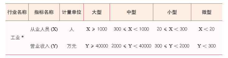 注:对于从事金融业的企业,根据《国务院办公厅关于金融支持小微企业发展的实施意见》(国办发〔2013〕87 号),人民银行、银监会、证监会、保监会与国家统计局于 2015 年联合印发《金融业企业划型标准规定》(银发〔2015〕309 号),形成了对《中小企业划型标准规定》和《统计上大中小微型企业划分办法》的有益补充。